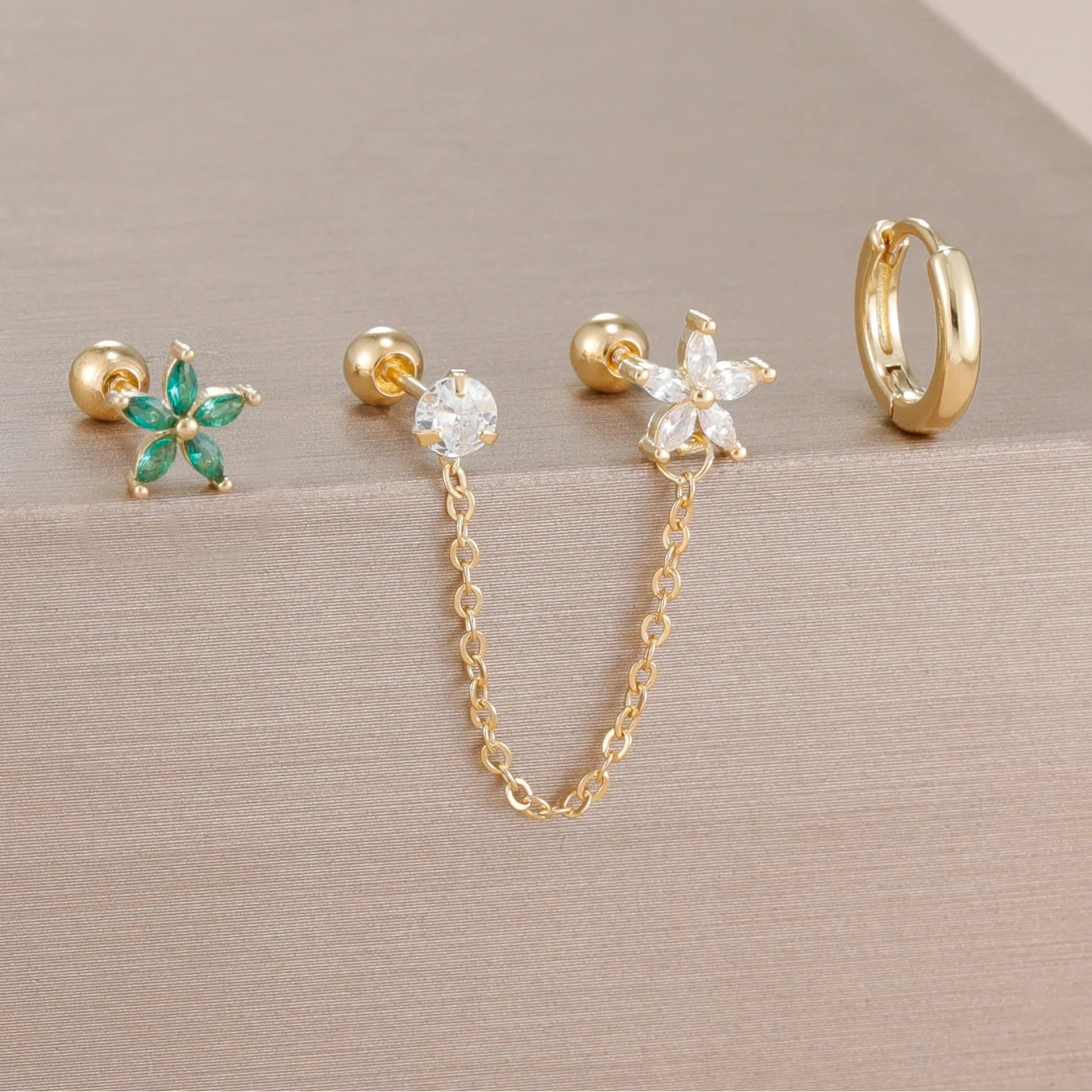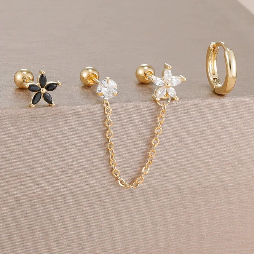 Rehaussez votre style quotidien avec ces boucles d'oreilles clous fleur en zircon 3 pièces, conçues pour ajouter un éclat subtil et un charme élégant à n'importe quel look. Ce magnifique ensemble comprend trois designs uniques de clous en forme de fleur, chacun orné de pierres de zircon de haute qualité qui captent magnifiquement la lumière. Fabriqués pour le confort et la durabilité, ces clous d'oreille légers sont parfaits pour un usage quotidien ainsi que pour les occasions spéciales.